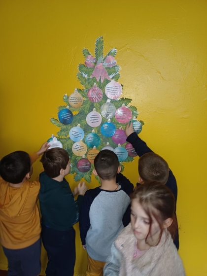 Напередодні зимових канікул діти з ООП долучилися до цікавої та корисної діяльності - прикрашання Ялинки безпеки. Разом з вчителями асистентів діти прикрашали її незвичайними кульками - кожна з них зберігала секрет безпечної зими.
